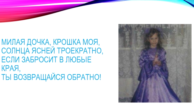 Слайд 12МИЛАЯ ДОЧКА, КРОШКА МОЯ,