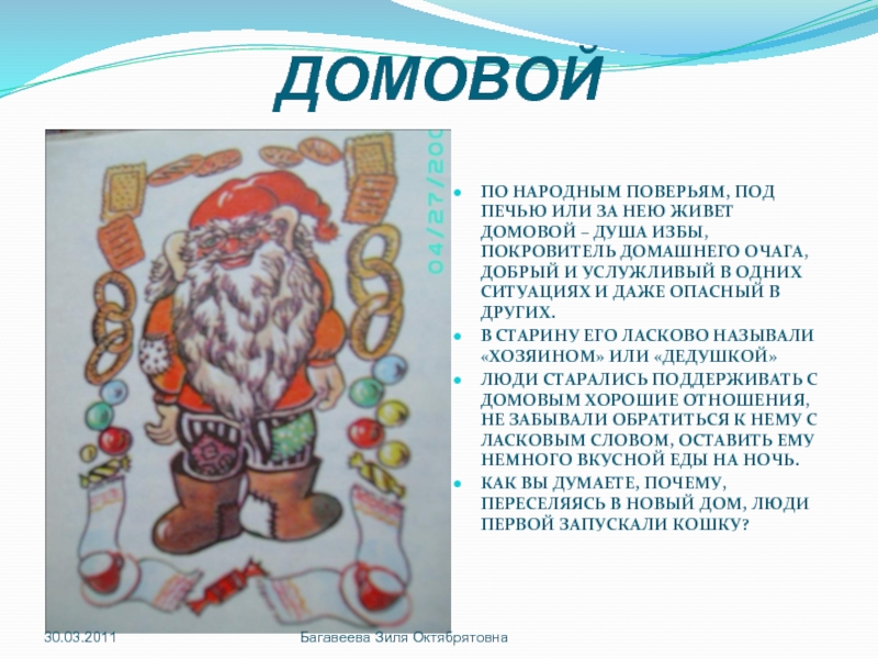 СУЩЕСТВОВАЛА ПРИМЕТА: ЧТОБЫ ПРИ УХОДЕ ХОЗЯИНА ИЗ ДОМА НЕ УШЕЛ ДОМОВОЙ, НЕОБХОДИМО БЫЛО ЗАГОВОРИТЬ ПЕЧЬ УХВАТОМ.
