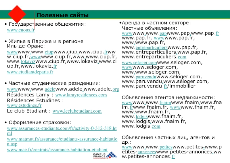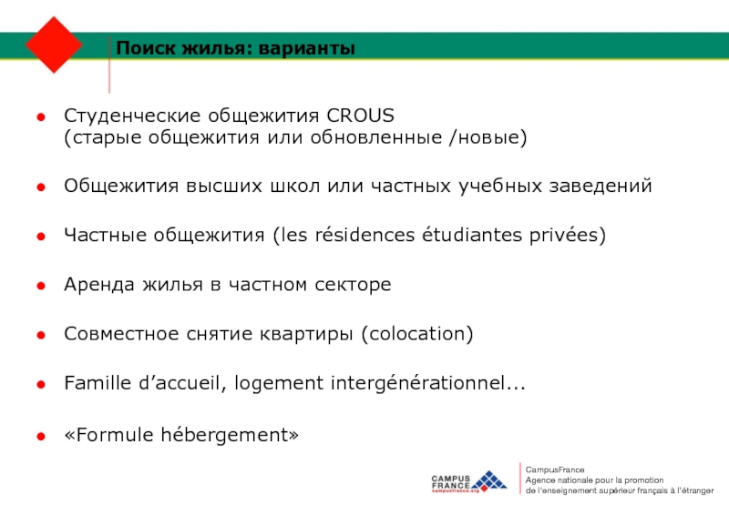 поиске жилья во Франции: www.campusfrance.org > Accueil >
