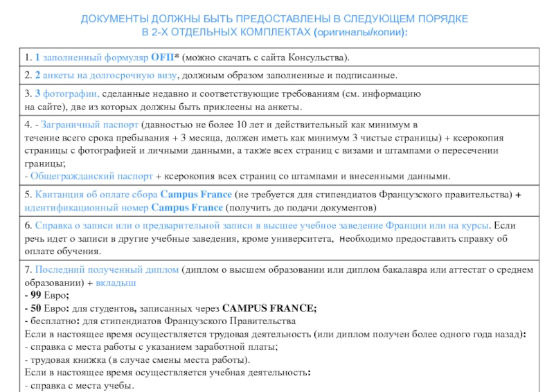 Слайд 24ДОКУМЕНТЫ ДОЛЖНЫ БЫТЬ ПРЕДОСТАВЛЕНЫ В СЛЕДУЮЩЕМ ПОРЯДКЕ