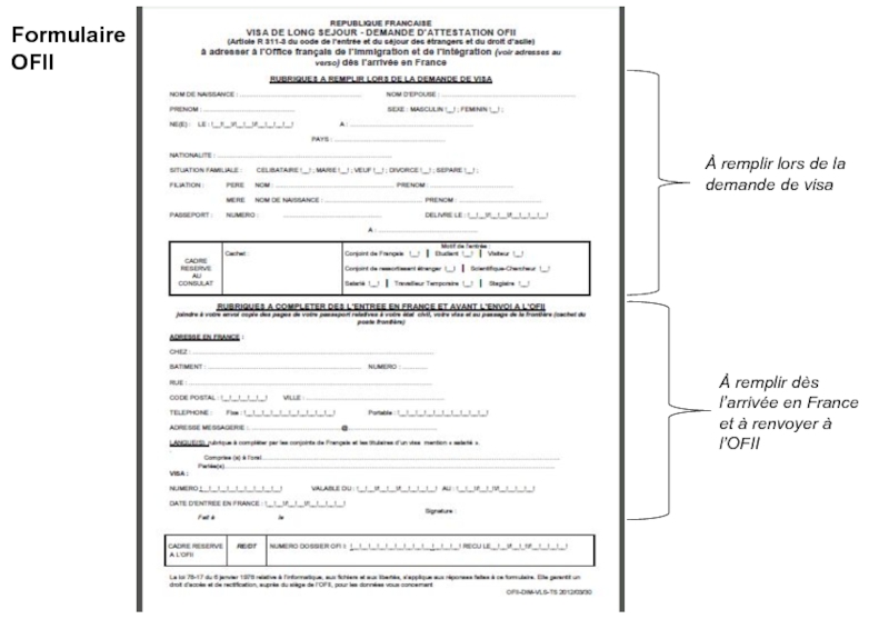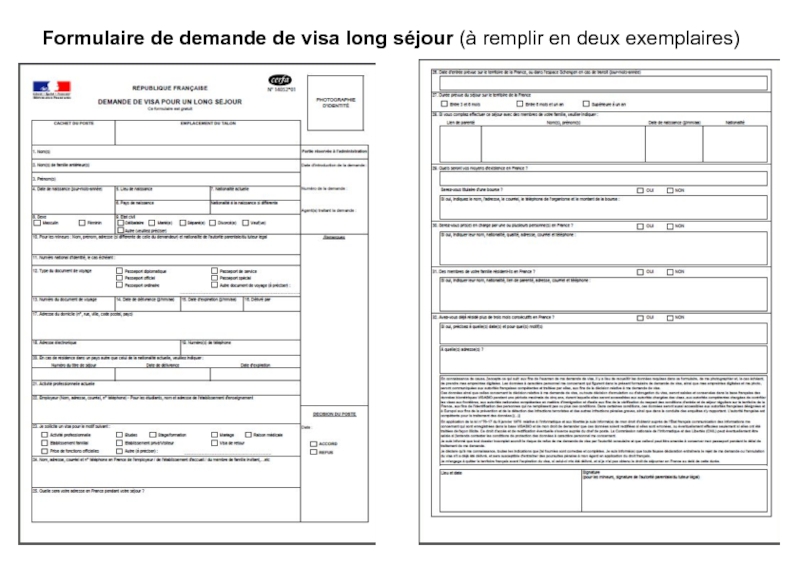 Слайд 26Formulaire de demande de visa long séjour (à remplir en deux