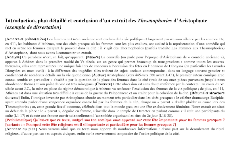 Слайд 21Introduction, plan détaillé et conclusion d’un extrait des Thesmophories d’Aristophane