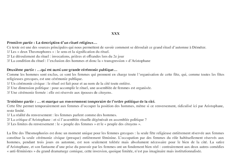 [Problématique] Qu’est-ce que ce texte, malgré son ton comique nous apprend sur cette fête importante pour les femmes grecques ? [variante : « Pourquoi cette fête religieuse est-il si importante et particulière pour les femmes grecques ?]