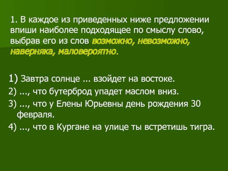 3) ..., что у Елены Юрьевны день рождения 30 февраля.