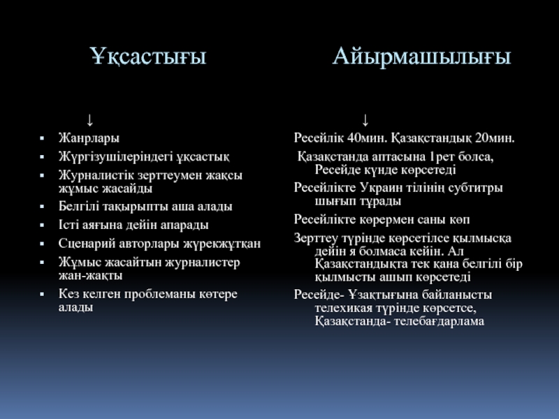 Ресейде- Ұзақтығына байланысты телехикая түрінде көрсетсе, Қазақстанда- телебағдарлама