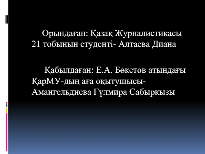Орындаған: Қазақ Журналистикасы 21 тобының студенті- Алтаева