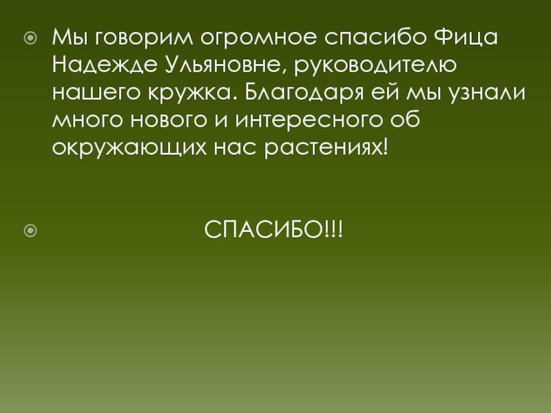 Мы говорим огромное спасибо Фица Надежде Ульяновне, руководителю нашего кружка. Благодаря