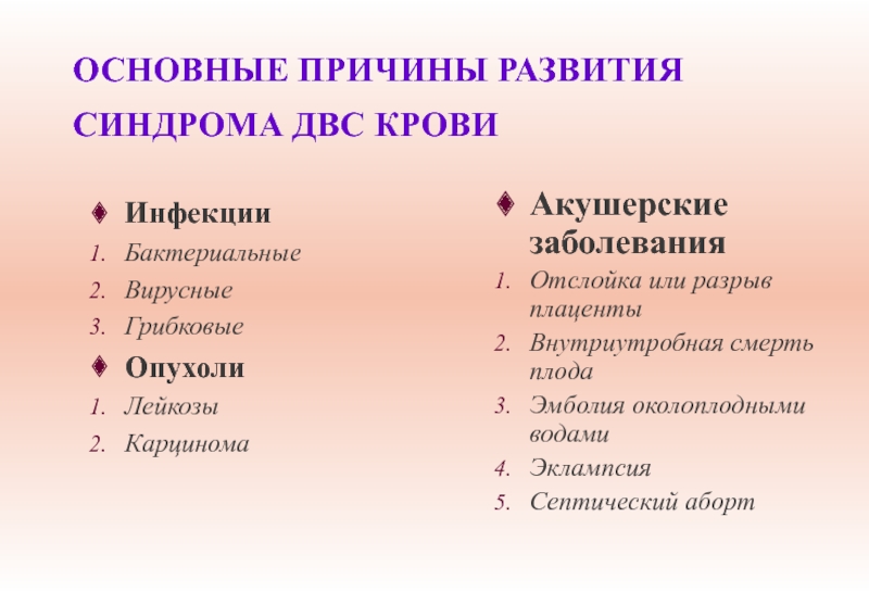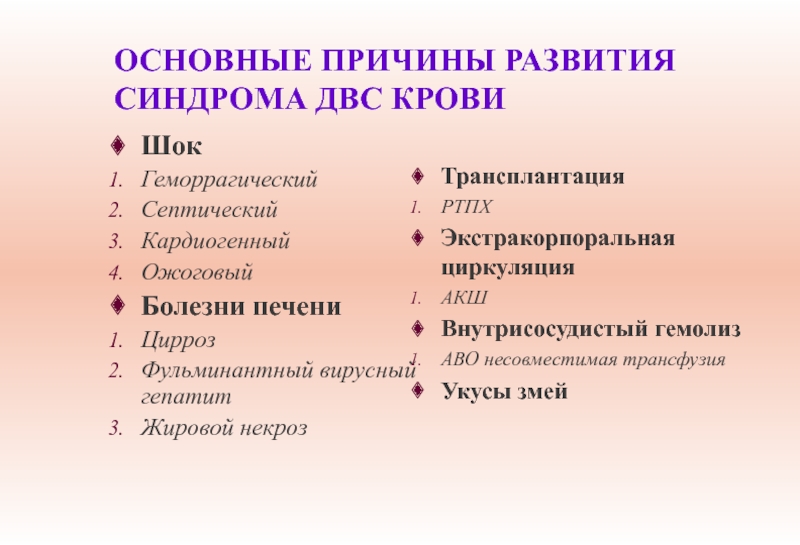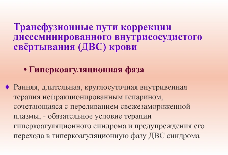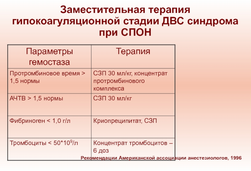 диссеминированного внутрисосудистого свёртывания (ДВС) крови