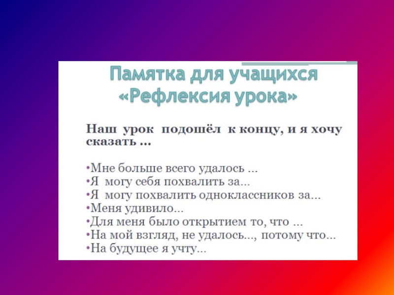 Возможность повторного изучения каждого этапа урока, переосмысление собственной цели обучения.