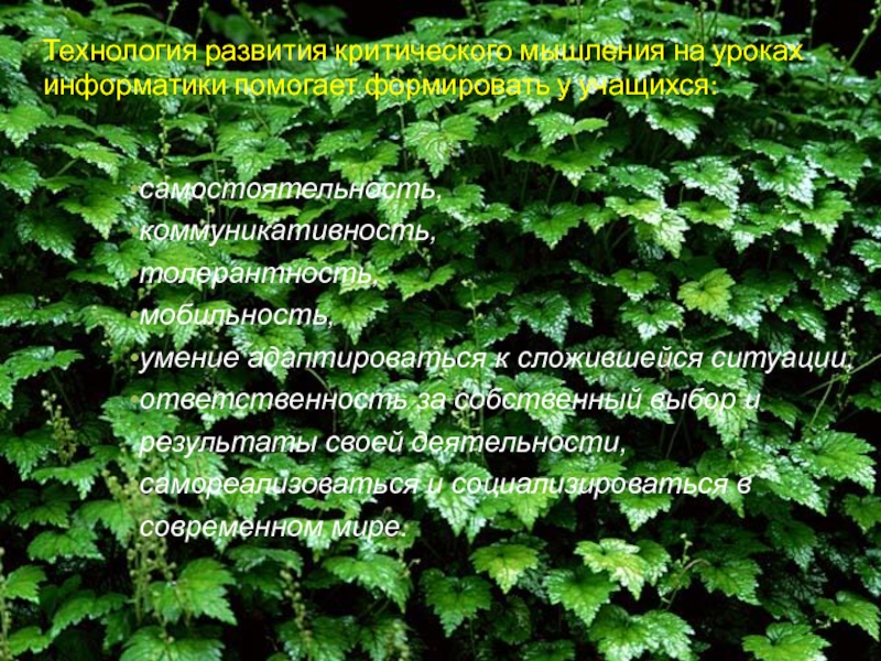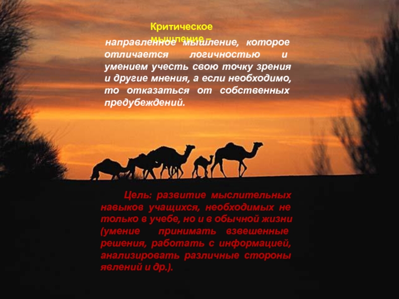 Цель: развитие мыслительных навыков учащихся, необходимых не только в учебе, но и в обычной жизни (умение принимать взвешенные решения, работать с информацией, анализировать различные стороны явлений и др.).