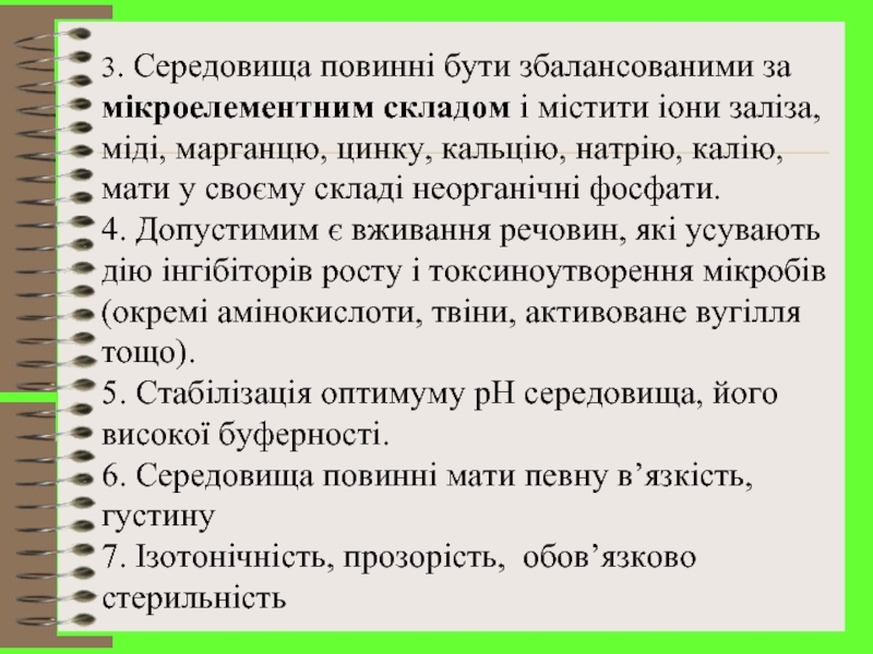 Слайд 1553. Середовища повинні бути збалансованими за мікроелементним складом і містити іони