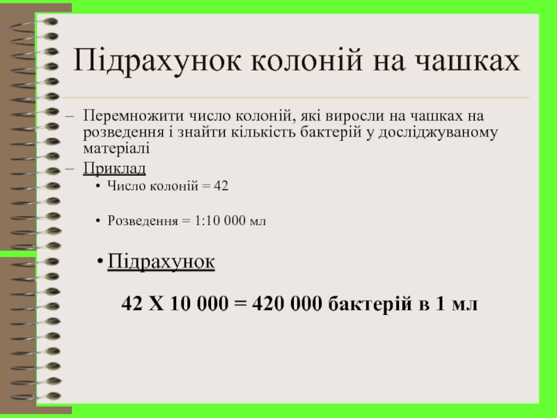42 X 10 000 = 420 000 бактерій в 1 мл