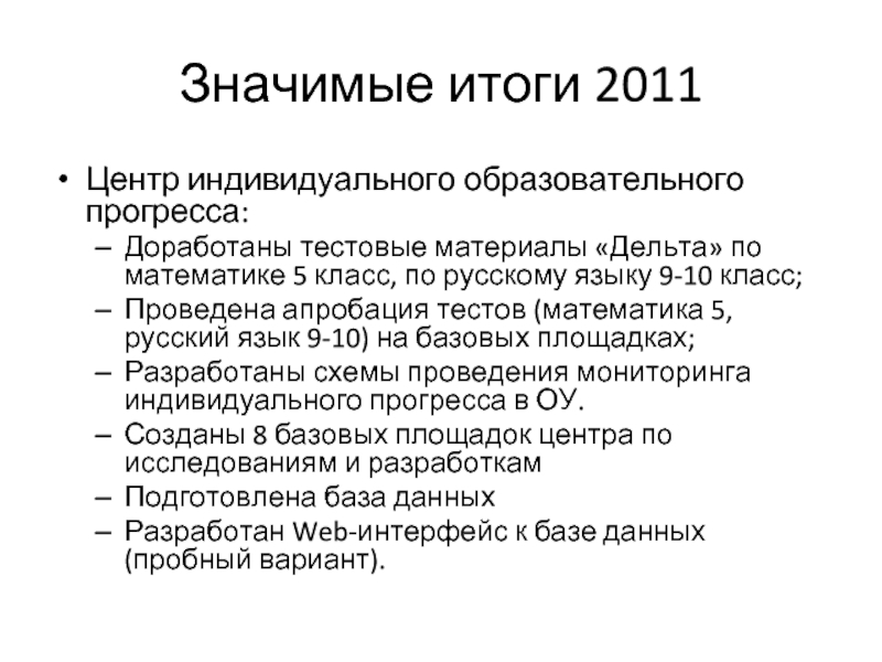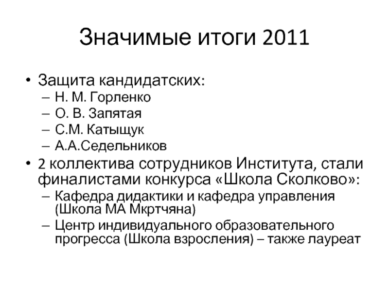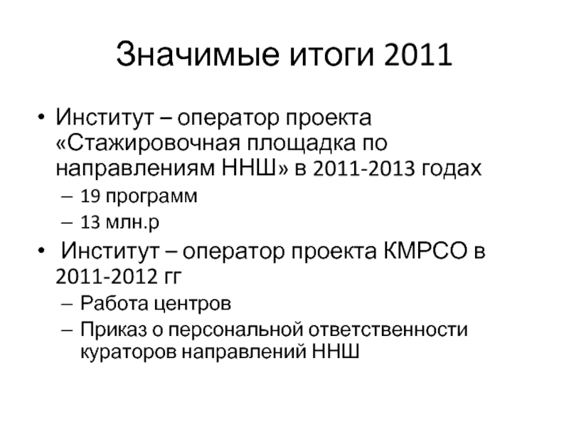 Слайд 1Значимые итоги работы Института в 2011 году и планирование 2012