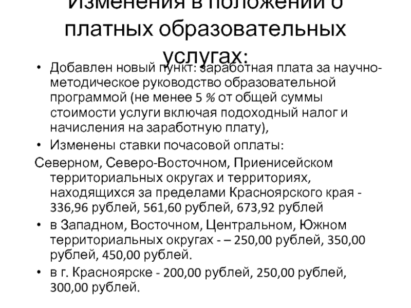 Оплата работ за счет приносящей доход деятельности (изменения в положении о платных образовательных услугах)