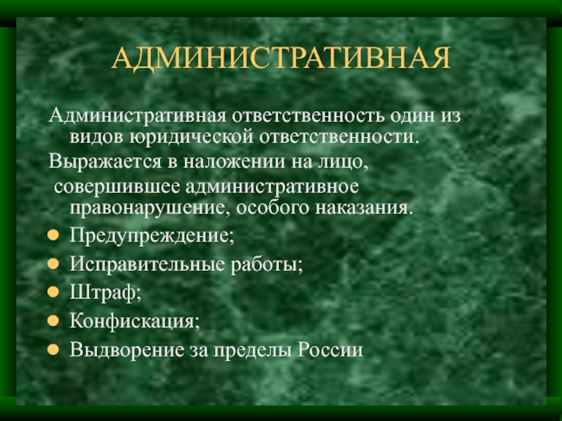 Административная ответственность один из видов юридической ответственности.