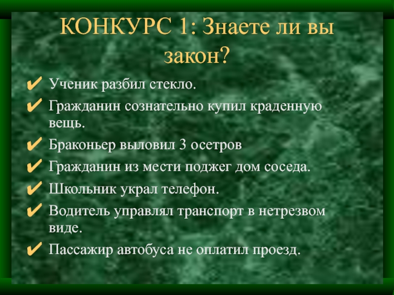 Слайд 8КОНКУРС 1: Знаете ли вы закон?