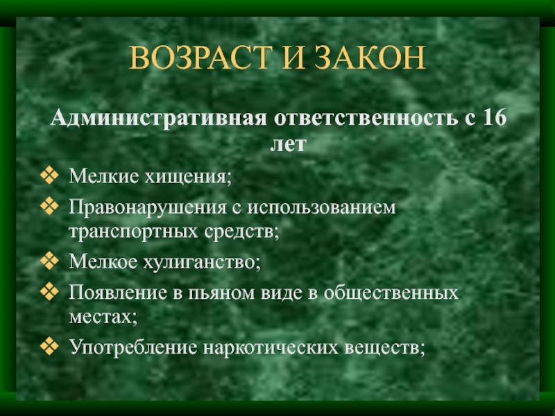 Слайд 21ВОЗРАСТ И ЗАКОН