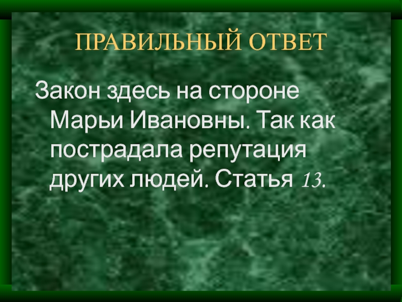 Закон здесь на стороне Марьи Ивановны. Так как пострадала репутация