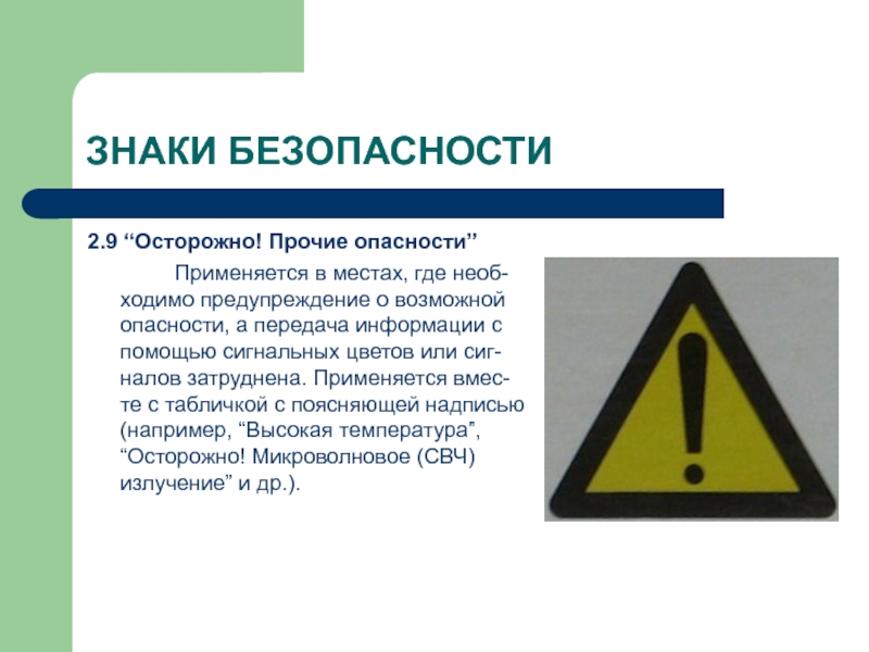 2.9 “Осторожно! Прочие опасности”