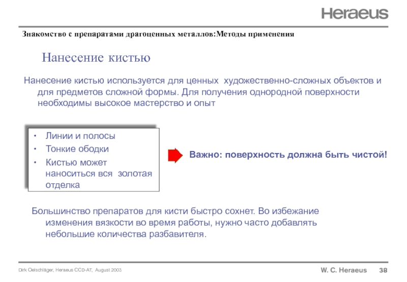 Большинство препаратов для кисти быстро сохнет. Во избежание изменения вязкости во время работы, нужно часто добавлять небольшие количества разбавителя.