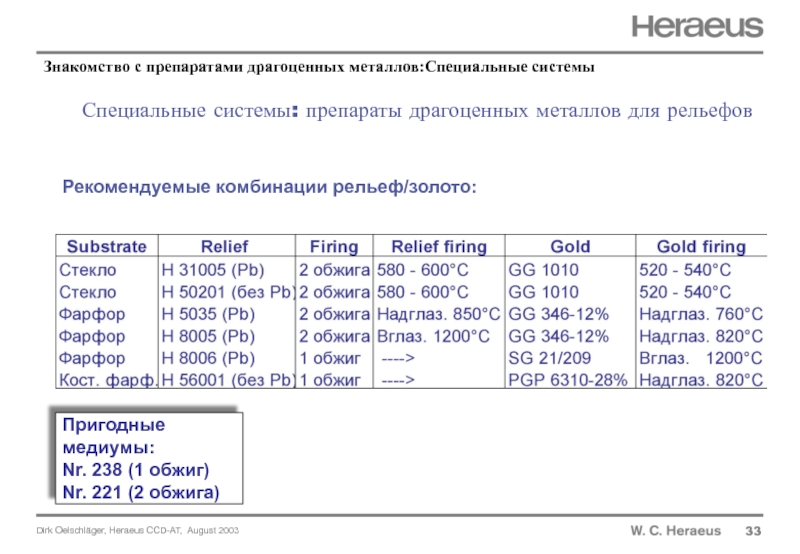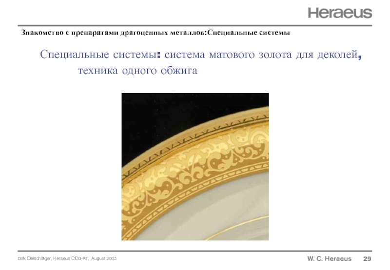 Знакомство с препаратами драгоценных металлов:Специальные системы