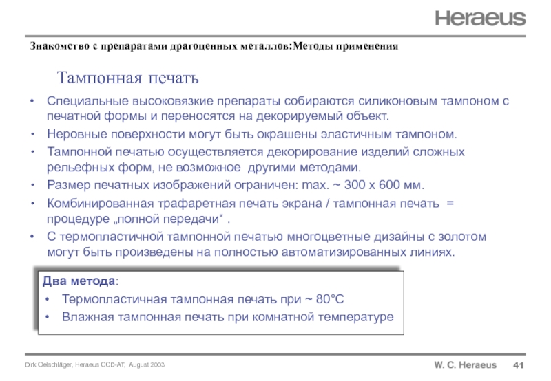 Две стадии обжига: сжигание органических составляющих и формирования пленки драгоценного металла приблизительно при 400 - 550 ° C. От 550 ° C флюс - и металлические добавки спекаются вместе с глазурью и достигается механическая адгезия.
