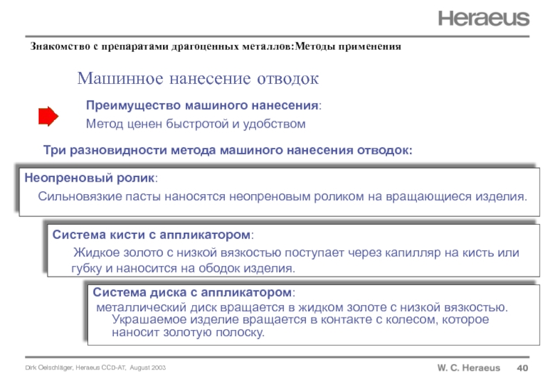 металлический диск вращается в жидком золоте с низкой вязкостью. Украшаемое изделие вращается в контакте с колесом, которое наносит золотую полоску.