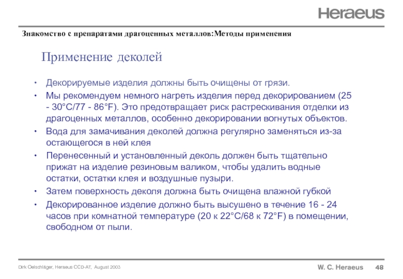 Очищать изделия перед декорированием, необходима атмосфера свободная от пыли