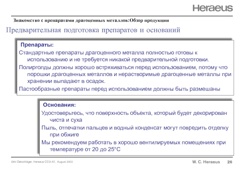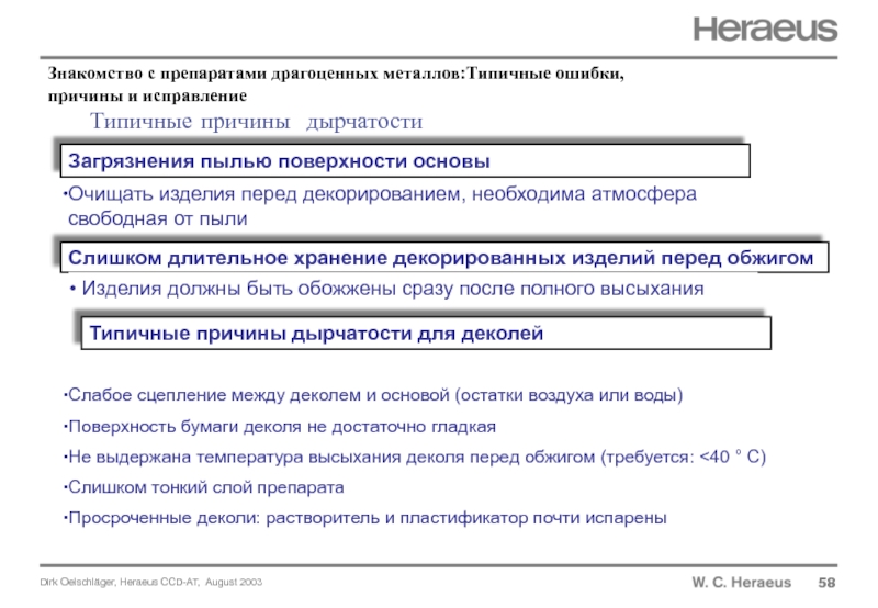 Знакомство с препаратами драгоценных металлов:Типичные ошибки, причины и исправление