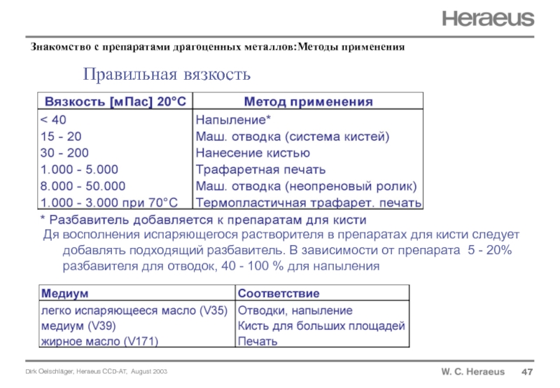 Регулирование вязкости добавлением 40 - 100 % V18 или V35