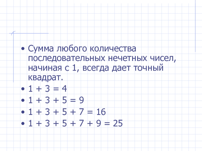 13 + 23 + 33 + 43 = (1+2+3+4)2