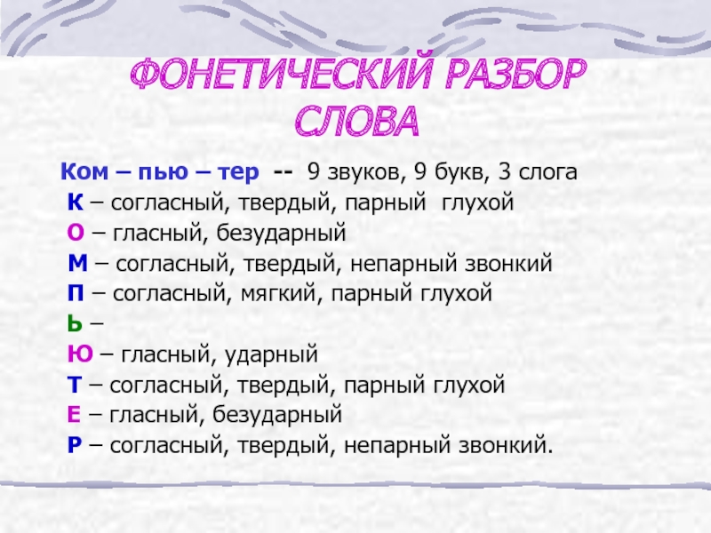 Слайд 5ФОНЕТИЧЕСКИЙ РАЗБОР СЛОВА