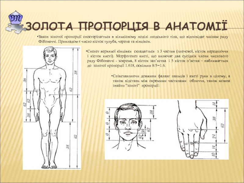 Слайд 15 ЗОЛОТА ПРОПОРЦІЯ В АНАТОМІЇ