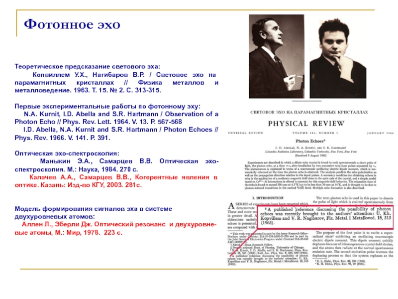 Каримуллин К.Р., Зуйков В.А., Самарцев В.В. Экспериментальная установка «Оптический эхо-процессор» / Когерентная оптика и оптическая спектроскопия. 2004. Вып. VIII. С. 301-308.