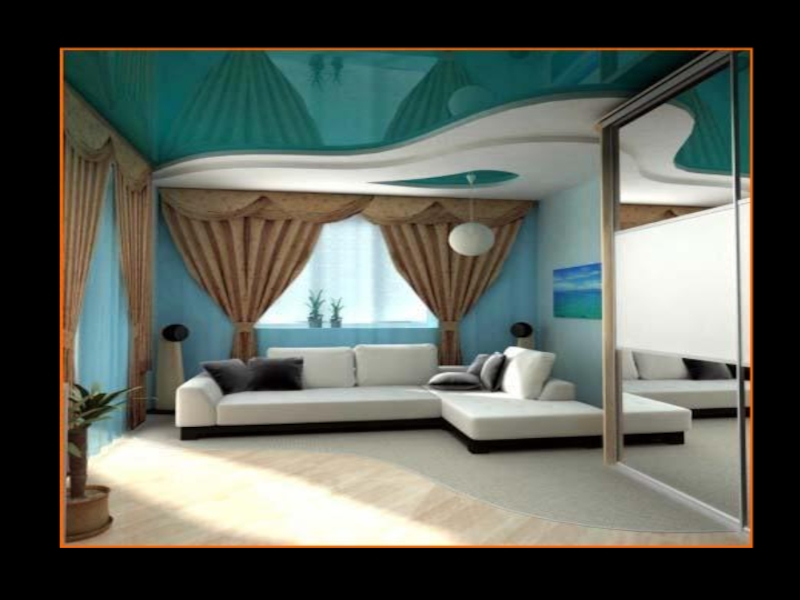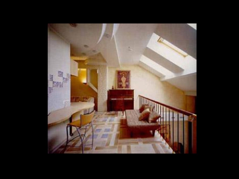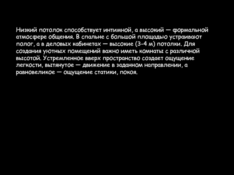 Слайд 38Низкий потолок способствует интимной, а высокий — формальной атмосфере общения. В