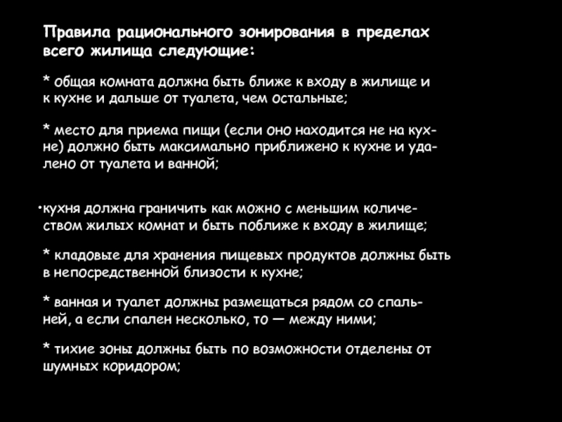 друг от друга различных по назначению зон — индивидуального и общего пользования, рабочих и для отдыха, тихих и шумных, а также зон для специальных занятий по увлечениям и самообразованию.