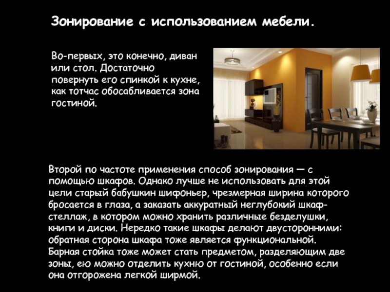 повернуть его спинкой к кухне, как тотчас обосабливается зона гостиной.