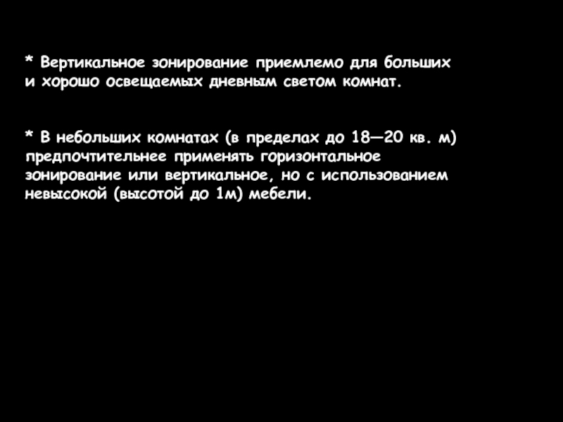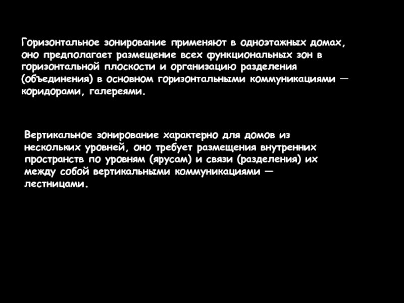 Слайд 15Горизонтальное зонирование применяют в одноэтажных домах, оно предполагает размещение всех функциональных