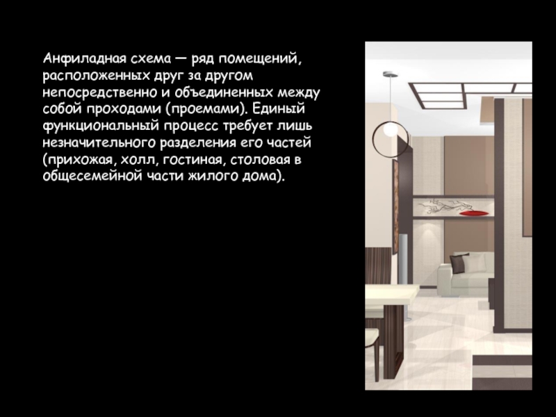 Слайд 36Анфиладная схема — ряд помещений, расположенных друг за другом непосредственно и