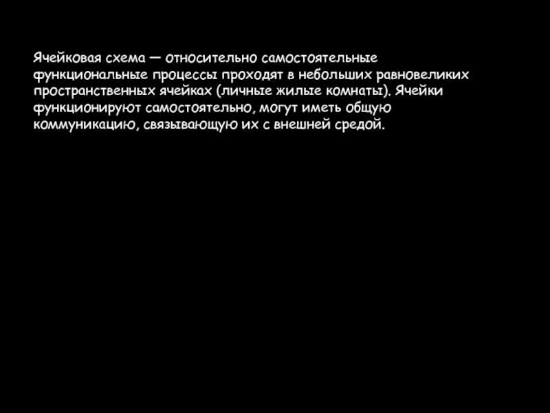 пространственных ячейках (личные жилые комнаты). Ячейки функционируют самостоятельно, могут иметь общую коммуникацию, связывающую их с внешней средой.