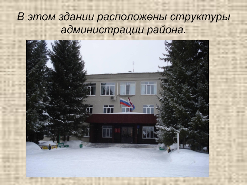 Слайд 16В этом здании расположены структуры администрации района.