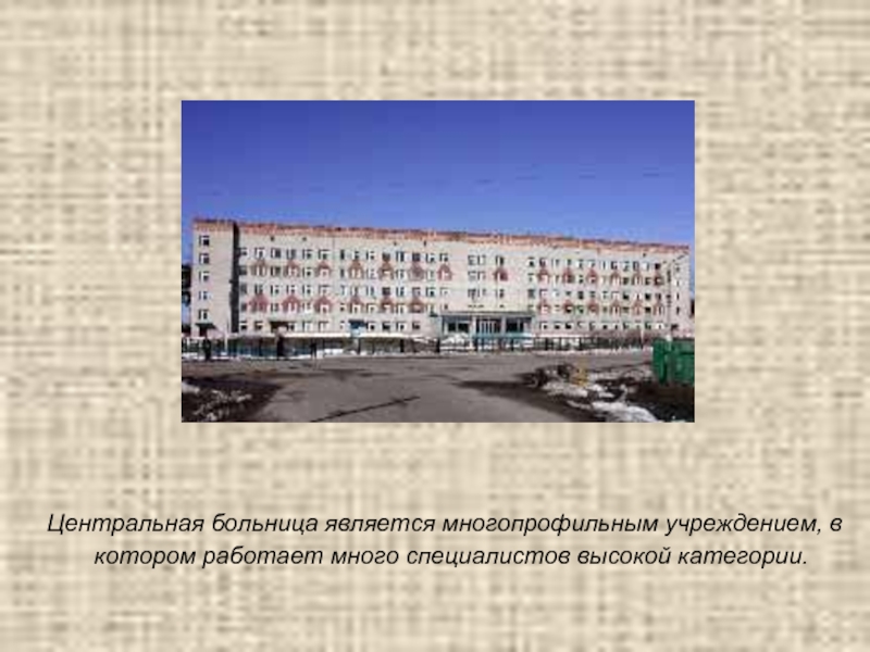 Слайд 11 Центральная больница является многопрофильным учреждением, в котором работает много специалистов
