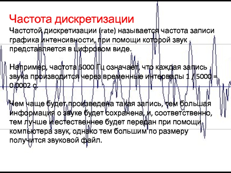 Чем чаще будет произведена такая запись, тем большая информация о звуке будет сохранена, и, соответственно, тем лучше и естественнее будет передан при помощи компьютера звук, однако тем большим по размеру получится звуковой файл.