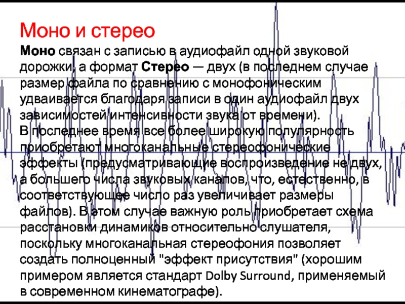 Моно связан с записью в аудиофайл одной звуковой дорожки,