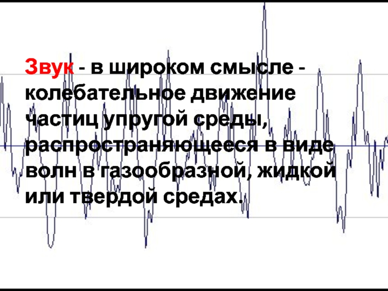 Слайд 2Звук - в широком смысле - колебательное движение частиц упругой среды,