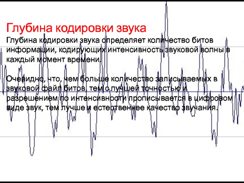 Глубина кодировки звука определяет количество битов информации, кодирующих интенсивность