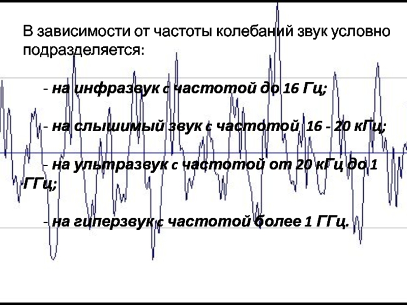 Слайд 3В зависимости от частоты колебаний звук условно подразделяется: