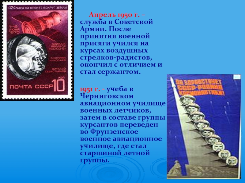 Слайд 8   Апрель 1950 г. – служба в Советской Армии.