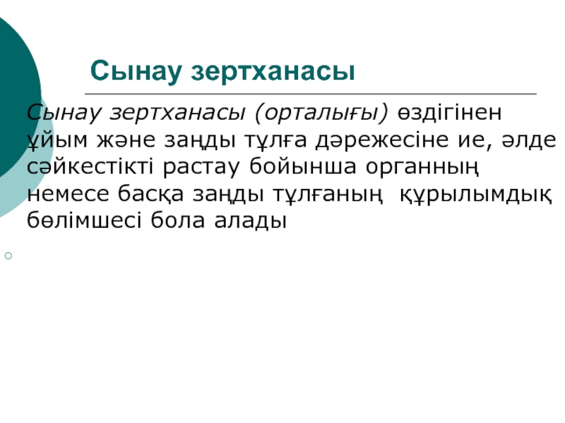 Сынау зертханасы (орталығы) өздігінен ұйым және заңды тұлға дәрежесіне ие,